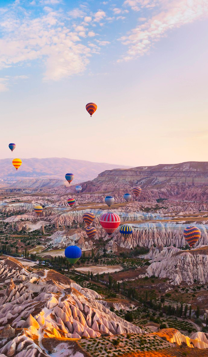 Capadocia, un Paisaje de Ensueño Adéntrate en un mundo de formaciones rocosas surrealistas y ciudades subterráneas en Capadocia. Maravíllate con los globos aerostáticos que llenan el cielo al amanecer, brindándote vistas panorámicas inolvidables. Explora las iglesias excavadas en las rocas y descubre la fascinante historia de esta región única.
